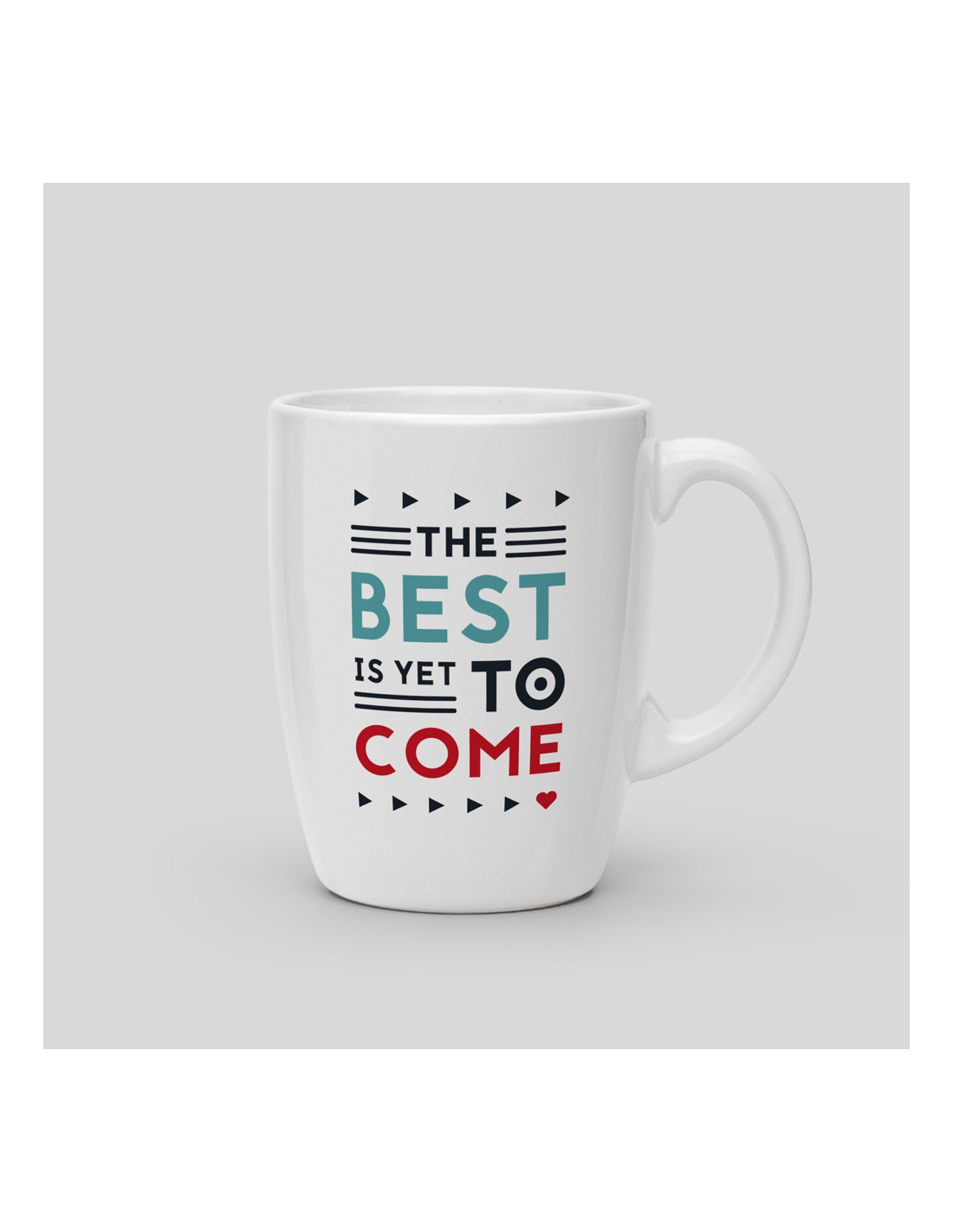 The best is yet to come! Start the day off right with a positive thought. 8,2cm diameter / 9,5cm height / 0.43kg. Dishwasher-proof.